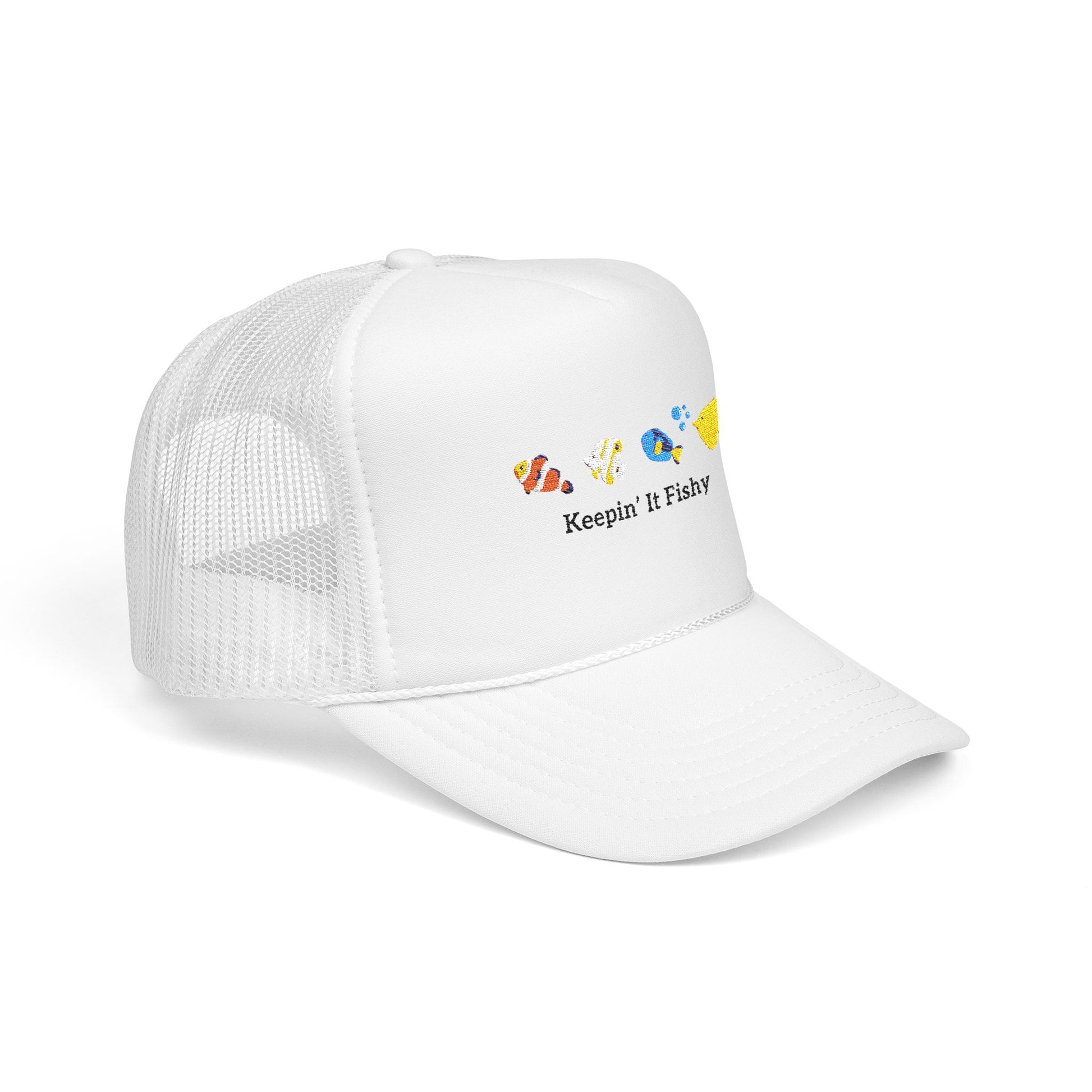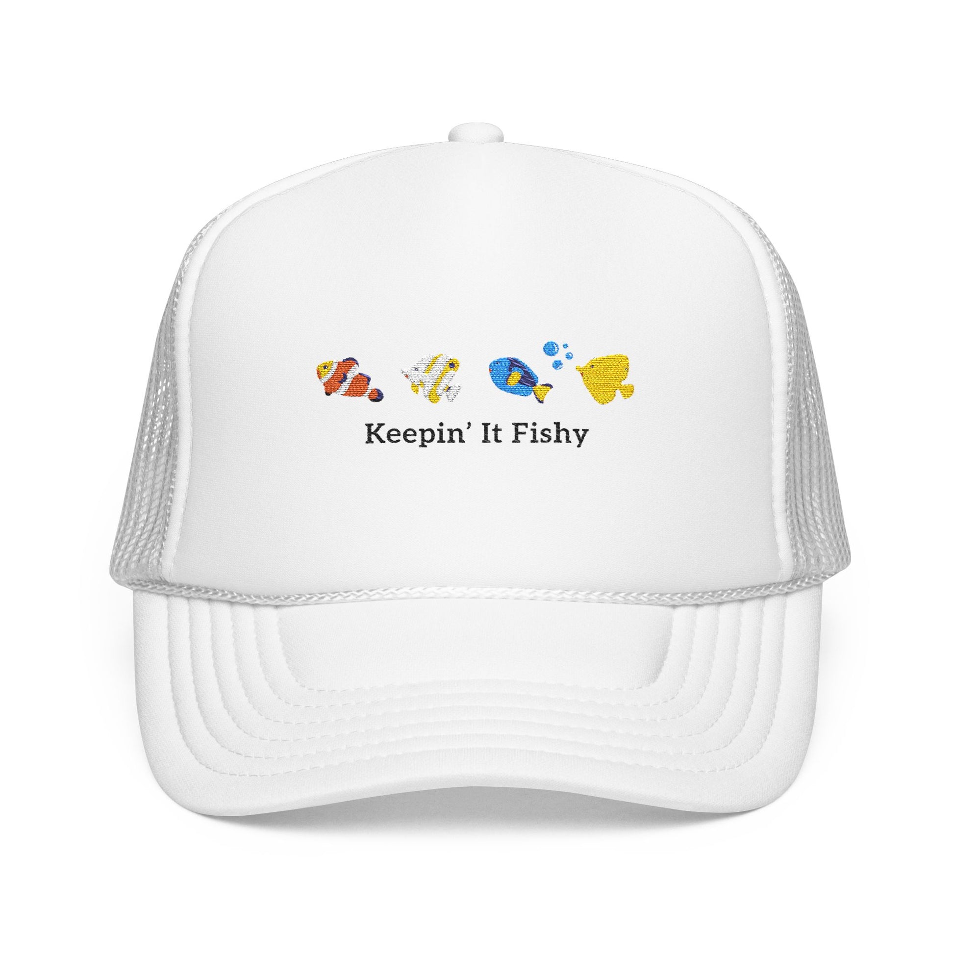 Keep it cool and casual with this Embroidered Fish Trucker Hat, featuring four detailed fish across the front for the perfect blend of laid-back style and aquatic flair. With its structured foam front and breathable mesh back, this high-profile cap is ideal for sunny days, beach trips, or just showing your fishy side. Whether you're reefing, fishing, or just vibing outdoors, this hat is a fun and functional way to top off your look. A great gift for hobbyists, dads, and ocean lovers alike.