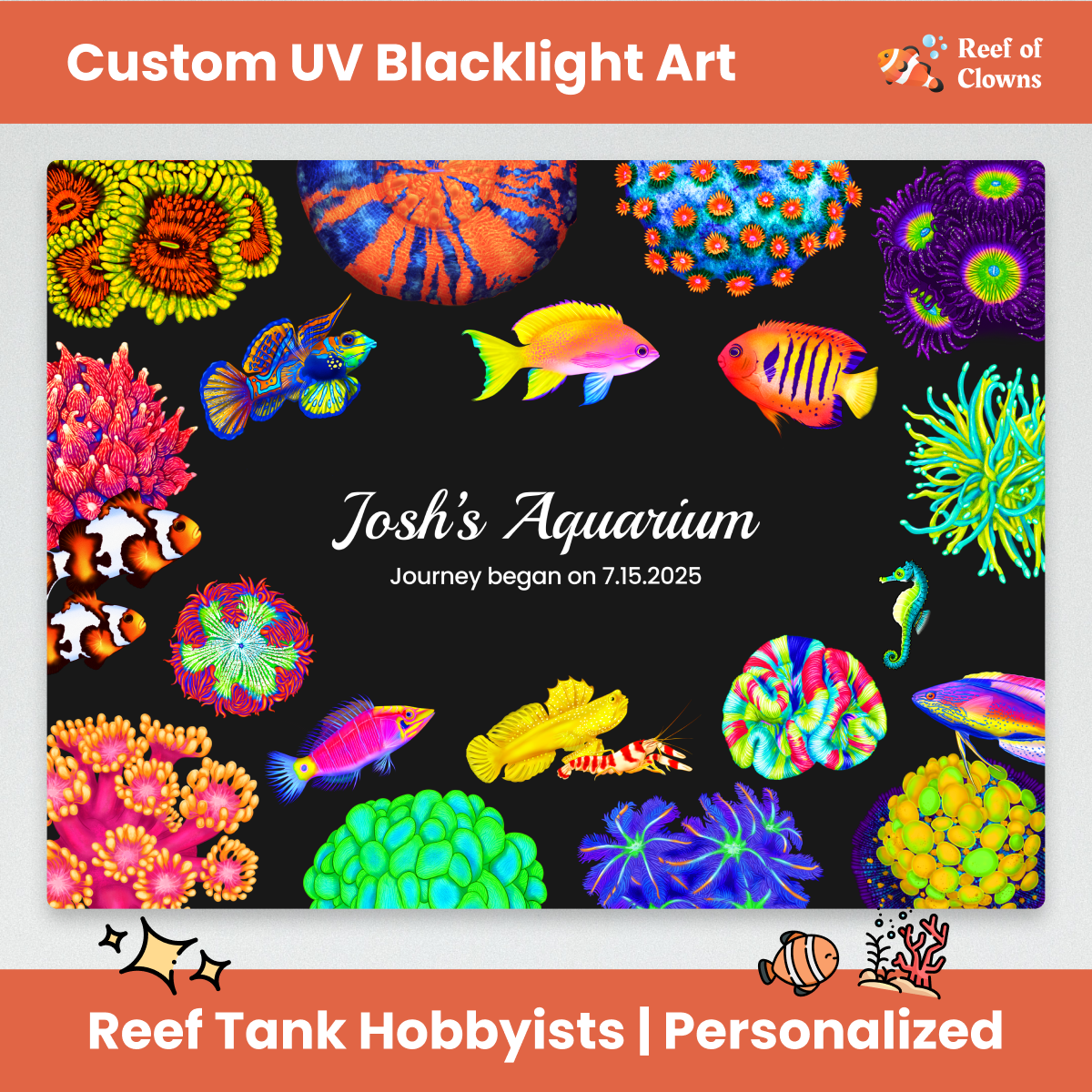 🎨 Make it yours – Add your aquarium name, founding date, a welcome message, or any custom phrase. We’ll personalize it with your choice of font, making it one-of-a-kind just for you.