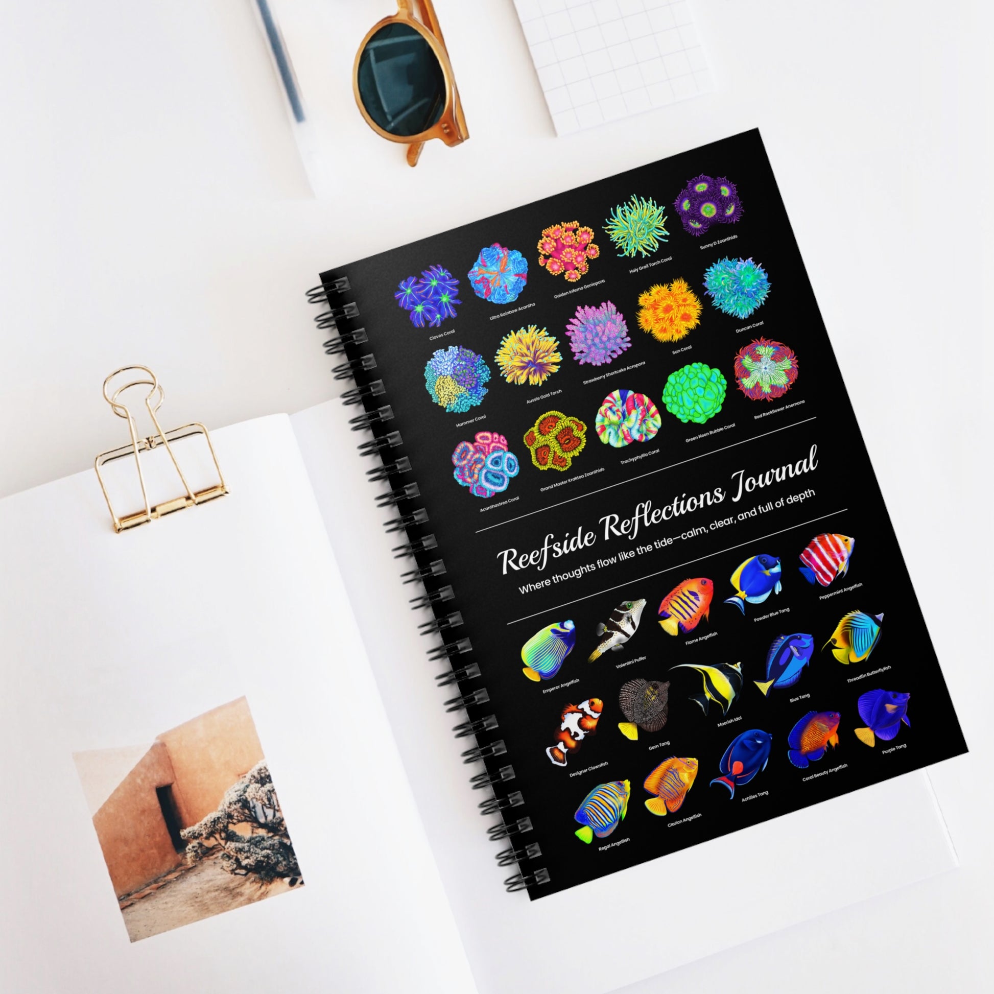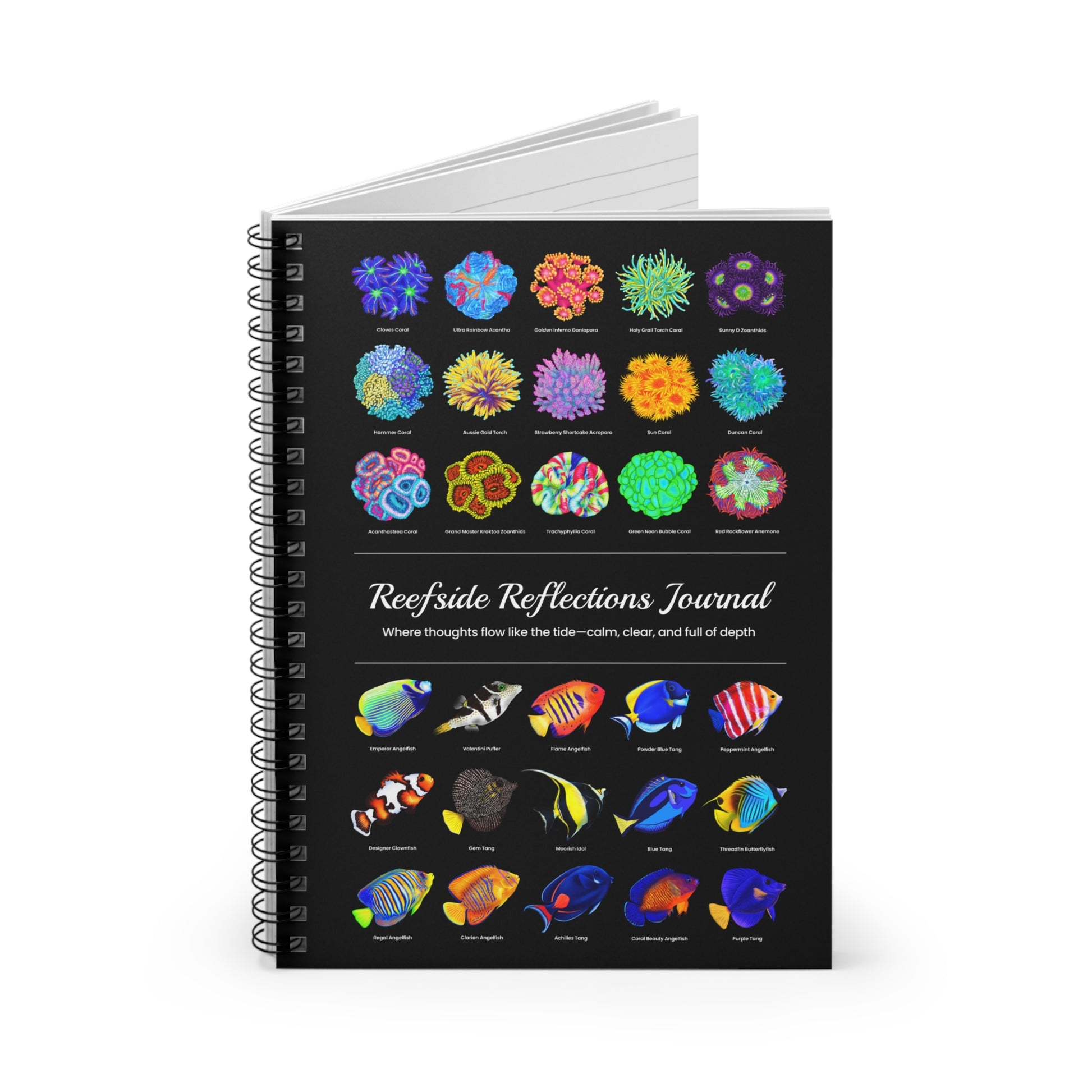Let your thoughts drift like currents with the Reefside Reflections Journal, a beautifully designed notebook inspired by the calm and color of reef life. Featuring vibrant saltwater fish and corals, this ocean-themed journal is perfect for daily writing, mindful reflection, note-taking, or creative planning. With lined pages, a durable spiral binding, and compact size, it’s an ideal companion for students, reef hobbyists, or anyone looking to bring a peaceful marine vibe to their day. Whether you're journaling by the tank or on the go, this saltwater fish notebook brings beauty and intention to every page.