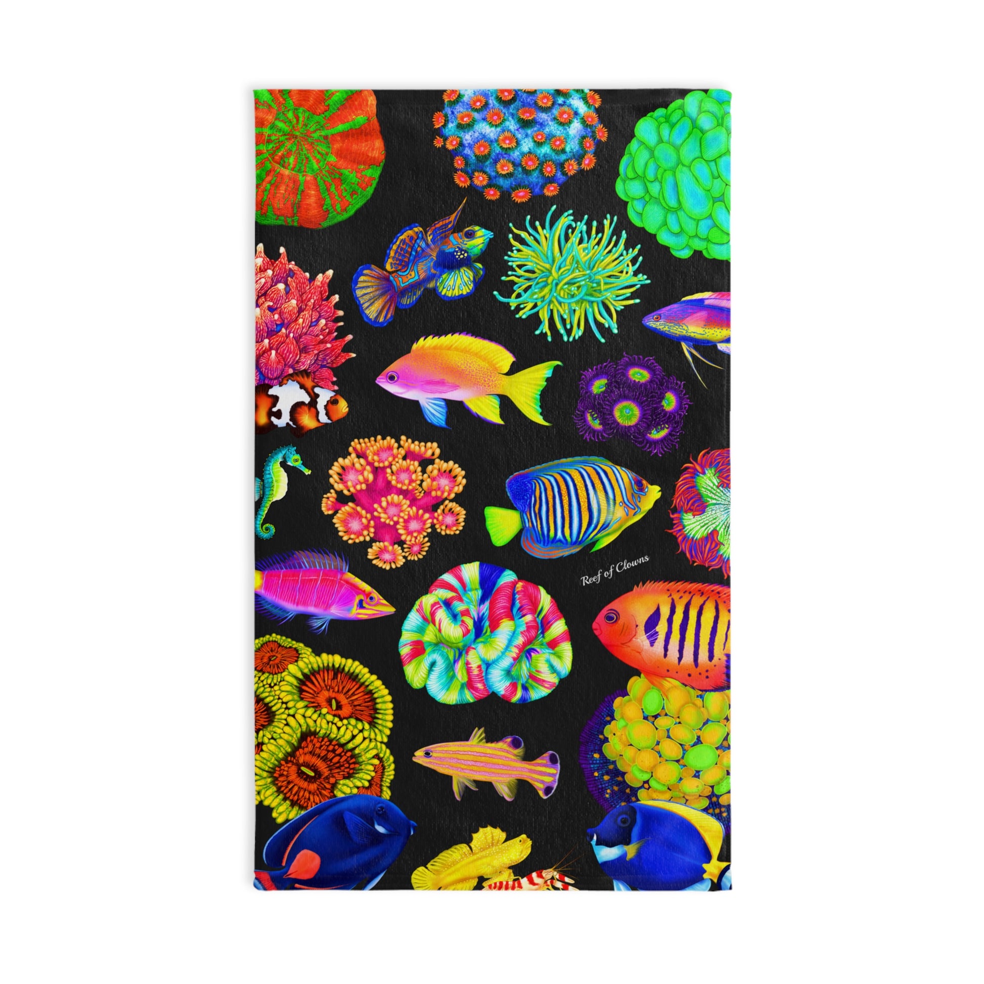 Add a splash of the ocean to your kitchen or bathroom with the Vibrant Reef Life Hand Towel. Featuring a lively mix of saltwater fish and colorful corals, this towel turns everyday functionality into reef-inspired art. Made from a soft, absorbent poly-cotton blend, it’s lightweight yet durable—perfect for drying hands, adding flair to your space, or gifting to fellow ocean lovers. Whether you're decorating for everyday use or special occasions, this towel brings energy, color, and reef vibes to any home.